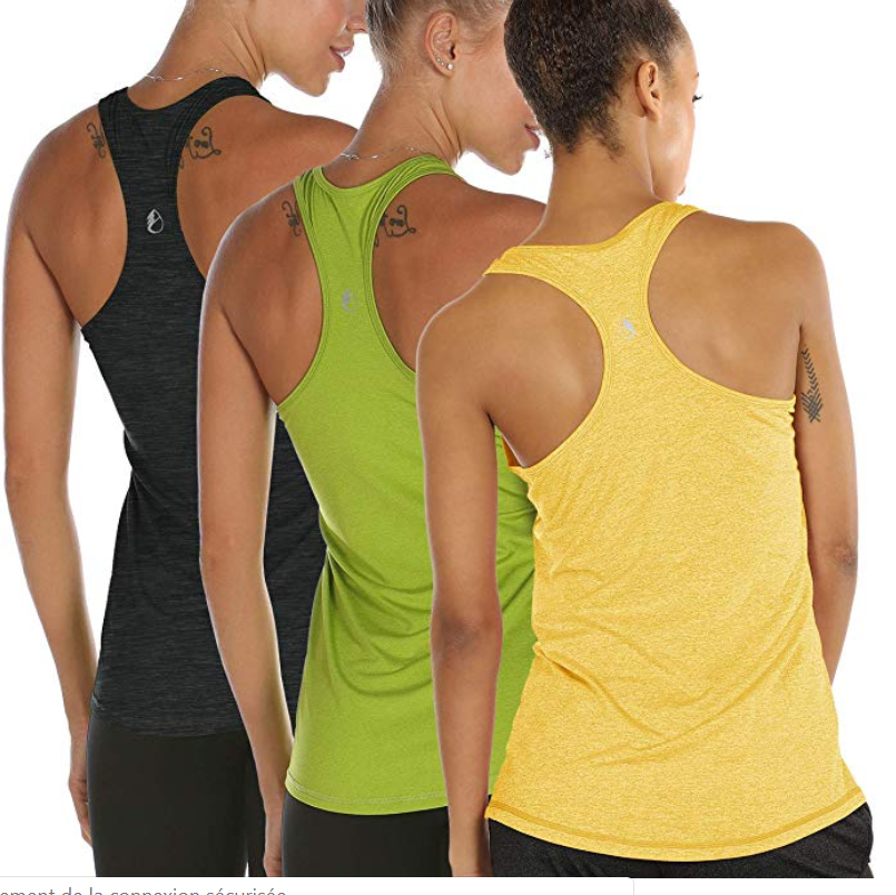 Débardeur de Sport Femme Dos Nageur Yoga Shirt sans Manches Running Fitness Tank Top, Lot de 3